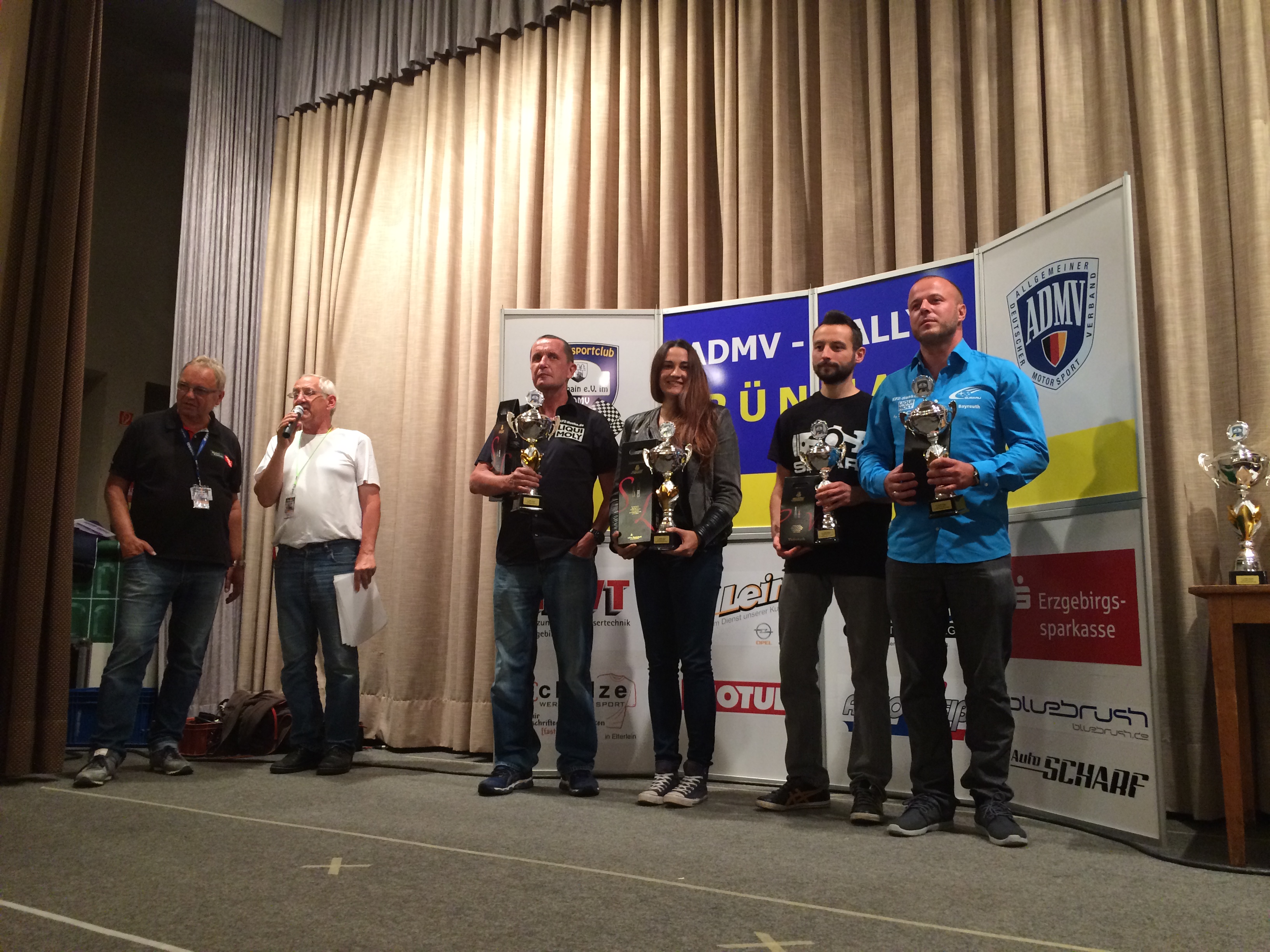 … auch wenn diese Wertung in keiner Ausschreibung zu finden ist, so hat sie am vergangenen Wochenende irgendwie doch existiert. Reinhard und Dominik Honke konnten einmal mehr beweisen, dass an dem Sprichwort „Der Apfel fällt nicht weit vom Stamm“ etwas Wahres dran ist. Die Honke´s machten sich auf den Weg in das wunderschöne Erzgebirge. Wie auch 107 andere Teams, folgten sie der Einladung des Motorsportclubs Grünhain e.V. zu Ihrer 13:01 Uhr machten sich alle 109 Fahrzeuge auf die erste Schleife des Tages. Etwas chaotisch aber unheimlich lustig traten Reinhard und Tina die erste Prüfung des Tages an. „Man darf ruhig erzählen, dass die 9 Volt Blockbatterie eine Minute vor ZK Start WP1 den Geist aufgab. Mit den verbleibenden 5 Startsekunden sorgte, die in Teamwork neu eingelegte Batterie, für ein ordentliches Gelächter auf der Prüfung zwischen Neudorf und Schönfeld.“ Erzählt Tina später im Resümee. „Mit der 4. Gesamtzeit gab es allerdings keinen Grund unentspannt zu sein nach diesem lustigen Auftakt.“ Die Beim Anfahren der Zeitkontrolle 7 vor dem `Rundkurs Lauter` dann eine merkwürdige Situation. „Wir fuhren an die ZK und meine Uhr zeigte mir eine noch verbleibende Zeit von 15 Minuten.“ erklärt die Copilotin. Nichts Ungewöhnliches. Fahrer und Beifahrer sehen solche Zeitpuffer in der Regel ganz gern, um sich in Ruhe auf die anstehende Prüfung vorzubereiten. Was aber auffiel, kein Fahrzeug vor uns war in der Wartezone zu sehen. „Ich wusste direkt wo der Fehler im Bild war und war alles andere als beunruhigt. Bevor ich allerdings meinen Fahrer Am frühen Morgen bei der Roadbook Ausgabe, gab es bezüglich dieser Etappenfahrzeit eine Mitteilung des Rallyeleiters die es ermöglichen sollte, für die hinteren Teams zusätzliche Scheinwerfer zu montieren, ohne in Zeitnot zu geraten. Hierfür war die Zeit um 5 Minuten verlängert worden. Tina vergewisserte sich nochmals anhand der gegengezeichneten Dokumente. Eine weitere Mitteilung hierzu gab es nicht. Es war also amtlich und Tina wies Reinhard bestimmend zurück, als er sich schon auf die Einfahrt in die Zeitkontrolle vorbereiten wollte. „Offensichtlich wurden hinter uns alle etwas nervös, das zeigte mir, dass auch hier Unstimmigkeiten im Umlauf waren.“ so Reinhard Honke später. Da sich Fahrer nicht mit solchen Aufgabenstellungen beschäftigen sollten, erklärte Tina ihrem Piloten kurz die Situation ohne dabei falsche Euphorie zu wecken. Schließlich lag noch ein schwieriger Rundkurs vor den beiden. Auch auf der letzten Wertungsprüfung, `Rundkurs Lauter` der zwei Runden plus Ausfahrt gefahren wurde, trennten Vater und Sohn nur 5 zehntel, die der Junior für sich entscheiden konnte. „Eine tolle Vorstellung lieferten sich die beiden heu Am Ende siegte Roland Macht mit der Startnummer 10, der um den fatalen Stempelfehler herum kam. Honke´s belegen Platz 2 und 3 in der Gesamtwertung. Mit nur 3,3 Sekunden gewinnt Senior Honke das große Familienduell. Ihr Rallyeteam Honke |